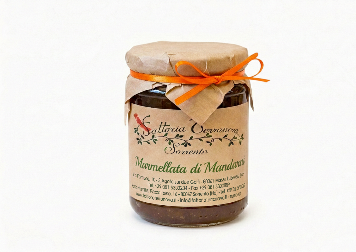 Tangerine jam produced in Sorrento by Fattoria Terranova, ideal for filling cakes and pies.