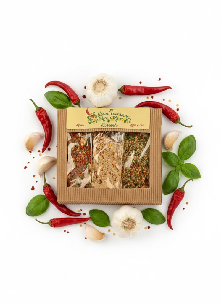 Ingredients: chili pepper, garlic, sea salt (max. 20%), parsley, chervil. Use: Pour the spices into a pan with a little extra virgin olive oil and let it warm for a few minutes. Add the cooked pasta to the pan and mix with the resulting mixture. Serve warm, sprinkled with parmesan.